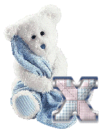 Alfabeto de osito de peluche con mantita celeste.